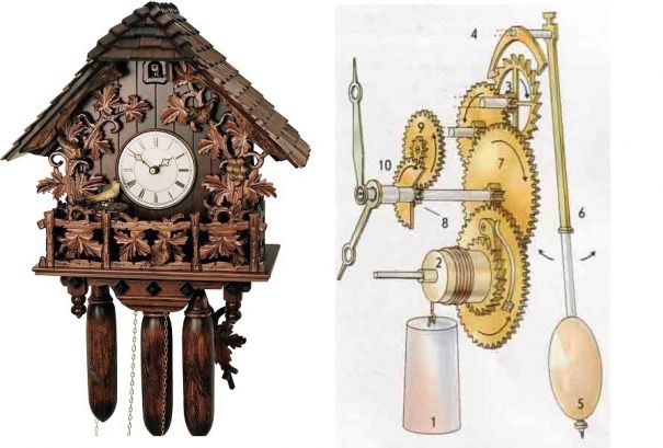 Общую конструкцию и маятниковый механизм представлял неплохо — в доме родителей висели на стене ходики с кукушкой. Они исправно отбивали каждый час, пока юный исследователь не полез выяснить — куда же прячется кукушка. Поломку так и не устранили — нужной детали на старинную модель у часовых мастеров не оказалось. Но с тех пор хорошо усвоил внутренности механизма — не раз пытался разобраться с ним. Примерно в таком виде и предполагал сделать свои часы — с гирями и маятником, а по возможности — с той же кукушкой, если справится с ней. Теперь старался вспомнить каждую деталь — маятник, анкер, храповик, циферблат со стрелками, их размеры, форму, размещение в корпусе. Рисовал, просчитывал, подправлял, пока не получилось что-то, похожее на прежние часы.