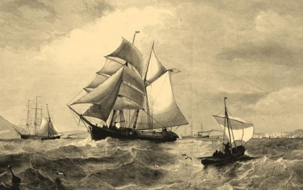 На входе в залив Сан-Франциско встретились с испанской трехмачтовой шхуной. Она стояла на швартовах у своего форта на полуострове, отделявшем с юга залив от океана. По-видимому, появление неизвестных судов с севера встревожило тамошнее начальство, через недолгое время шхуна отошла от причала и скорым ходом пошла на перехват. Малагин не стал сдерживать свои корабли, но, на всякий случай, дал команду приготовиться к бою. Лишь когда испанец встал на его курсе и дал холостой выстрел, велел остановиться и ждать посланца от противника — таким посчитал за явно недружественный маневр. Вскоре на шхуне спустили в воду небольшую шлюпку с тремя матросами, те направились к ставшей впереди бригантине. На борт корабля по трапу поднялся старший из них, по-видимому, офицер, судя по украшенному галунами камзолу и роскошному плюмажу на головном уборе. Встав напротив капитана, он снял с небольшим поклоном треуголку и начал говорить на своем.