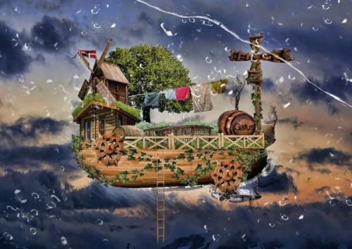 И вот она рассекает туманно-дождливую пелену на странной небесной посудине в компании с дюжиной других пассажиров и командой бравых воздухоплавателей. Хотя, судя по окружающему пейзажу, их скорее надо называть скрозьмороселетчиками или туманоплавателями. Или…? Ведь никого из них не удивляет, что солнца совсем не видно.