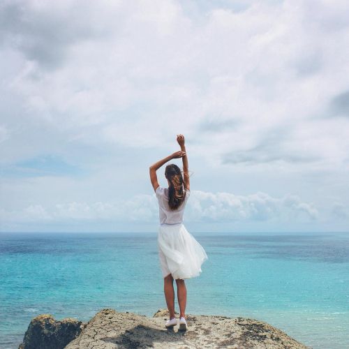 Она стояла на утёсе и смотрела вдаль. У ног клокотала пучина. Огромные волны с бешеной силой разбивались о скалы, обдавая её стройное тело потоком солёных брызг. Ветер трепал волосы и раздувал подол лёгкого белого платья.