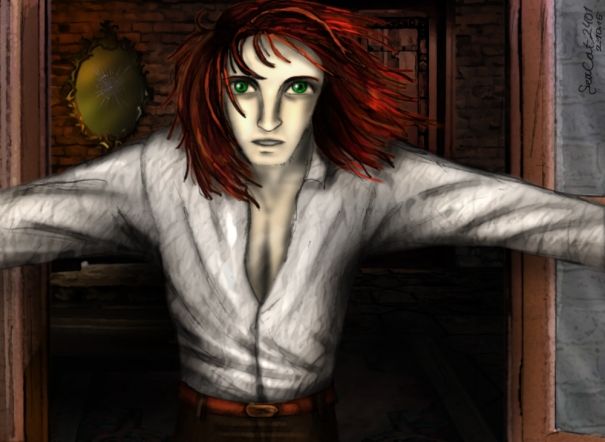 Но в горячих слезах запечатлелся доселе невиданный облик. Это не та женщина, убитая им только что, но чем-то походящая на неё. Она моложе и прекраснее. Она одета в необычные белые одежды, очерчивающие контур её тела, её рыжие до красноты волосы горят огнём на свету, её лёгкая, ангельская походка приковывает даже самый искушённый взор. Он не встречал её ни в Лондоне, ни в Шотландии, ни где-либо ещё, но почему же она зовёт его? Почему так ласкова с ним?