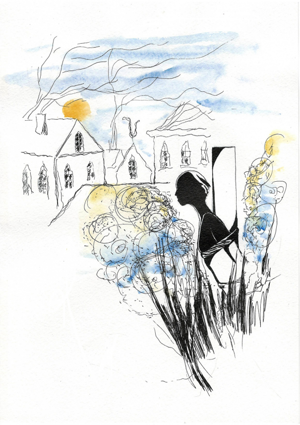 На мольберте у окна всегда стоял один и тот же набросок: белые крыши домов, черные трубы, серый дым, черные ветви деревьев. Вид из окна мансарды. Первое, что она нарисовала, когда поселилась здесь.