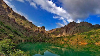 Окружающая природа завораживала. Небольшое горное озерцо, окруженное желтыми скалами из ракушечника и редкими кряжистыми деревцами, отражало пронзительно-синее небо и казалось необыкновенно ярким и спокойным. Трудно даже поверить, что в его водах мы только что перенесли такие испытания.