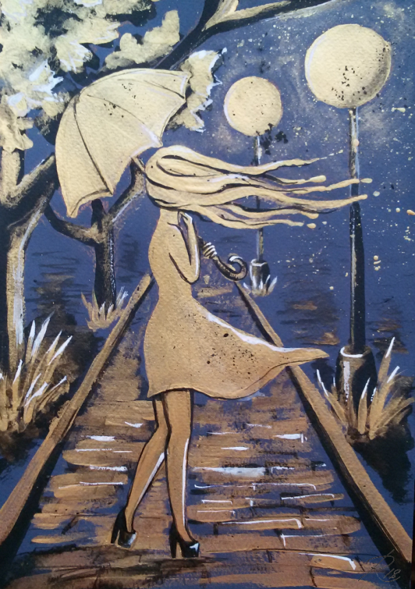 (золотой акрил, тушь, гуашь)