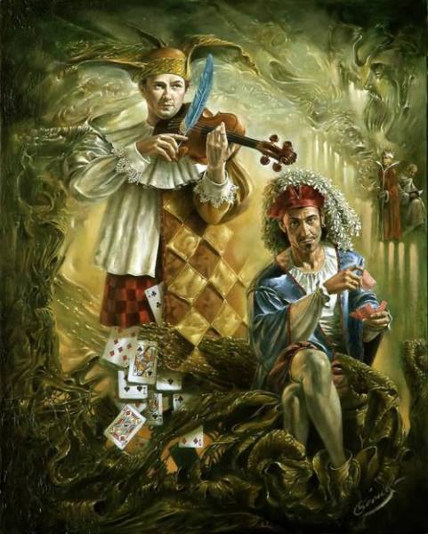 — Выплюнь, Бо, — меланхолично произнес Придворный Шут Его Величества Герострата Первого и пальцем провел по ребру карточной колоды. Колода издала сухое "тр-р-р", а стоявший рядом мужчина вынул изо рта павлинье перо и, выплыв из мира грез, покосился на собеседника: — А?