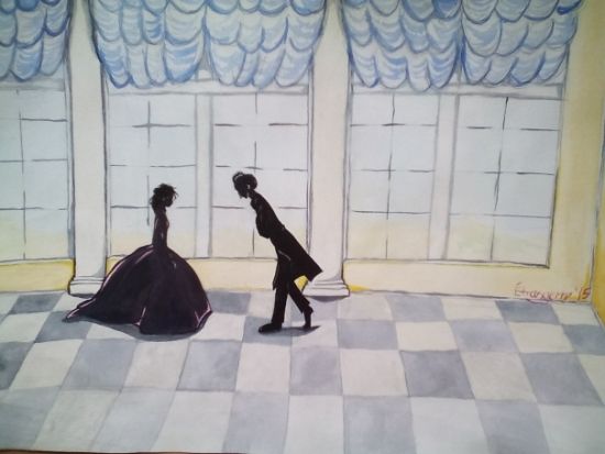 Где-то вдалеке хлопнули двери, и в противоположном конце коридора показалось странное существо: снизу, на полу — руки в розовых рукавчиках с аккуратными кружевными манжетами, чуть выше — сумбур из сбившихся вместе юбок, а вверх торчат длинные ноги в белоснежных чулках и очаровательных туфлях с пряжками. Существо поравнялось с фигурой в чёрном и вдруг, кувырнувшись через себя, оказалось симпатичной чуть курносой девочкой на вид лет двенадцати (на самом деле, через два месяца ей должно было исполниться пятнадцать). Она мгновенно залилась краской и, присев (показав при этом верх изящества), сказала приветливо, почти скороговоркой: