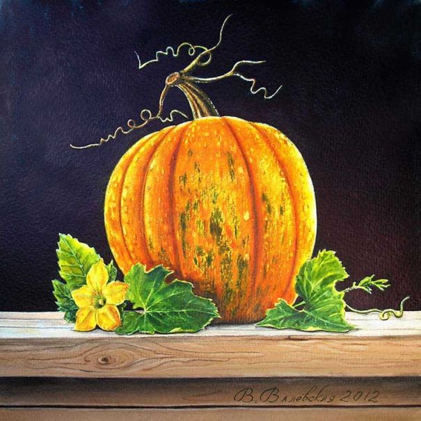 Валентина Валевская — "Натюрморт с тыквой" акварель