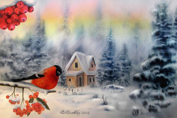 Вот и пришла наконец-то царственная Зима-чаровница, уверенно набросила пушистое белоснежное покрывало на промёрзшую насквозь землю, надёжно сковав ледяными панцирями весёлые ручьи и речушки. А лужи и вовсе выморозила в ледовую крошку. Полупрозрачными хрустальными зеркалами застыли до весны глубокие чистые озёра. Бессильно обвисли пушистые еловые лапы под властным гнётом холодного снега. Дремлет, словно в летаргическом сне, седая, заиндевевшая тайга, и снятся ей минувшие весёлые летние деньки, когда жизнь в зелёной пуще кипела вовсю. Нынче же всё затихло в округе. Лишь изредка гулко хрустнет где-то в самой чащобе старая сухая ветка, да промелькнёт огневым сполохом лиса-мышатница, проверяя свои охотничьи угодья — и снова тихо. А сегодня с раннего утра, едва забрезжил рассвет, налетели к спящей заимке лесника неугомонные снегири, расселись дружно по веткам рябины, словно алые фонарики, ягодами подкрепились — и давай песни распевать. Посвистывают, поскрипывают: "фить-фью" да с трелями нежными и разливистыми. Чудесный, сказочный день…
