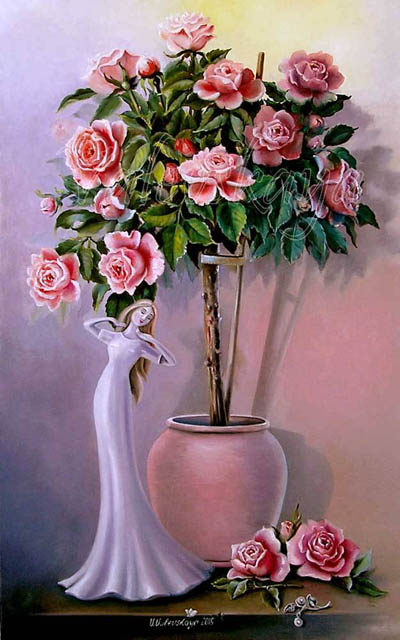 Валентина Валевская — "Розовый натюрморт" — холст, масло