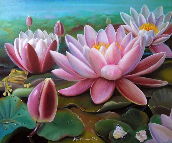Говорят, когда хрупкие кувшинки, напитавшись за день щедрым солнечным теплом, поздним вечером закрываются и медленно, словно светящиеся фонарики, опускаются в глубины прозрачных вод, то превращаются в стройных весёлых русалочек. В тихих заводях, окружённых густыми зарослями, и на светлых песчаных отмелях водят они в лунном сиянии плавные хороводы с блуждающими огоньками и распевают нежные песни о вечной любви, причаровывая припозднившихся странников, и, конечно же, озорничают до самого рассвета.