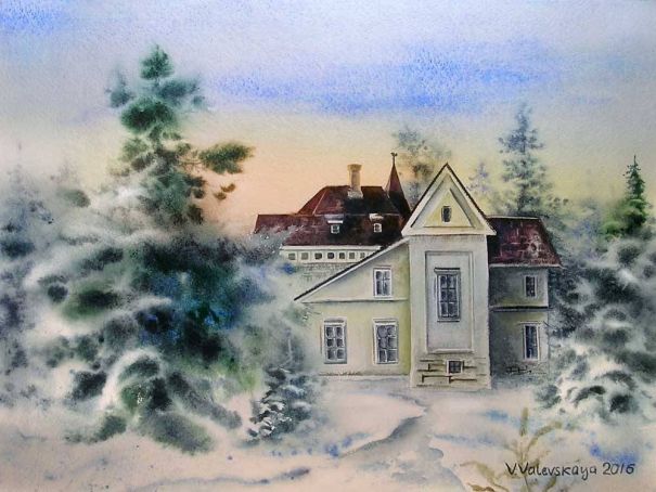 Вскоре пушистый снег укутывает усадьбу белым пледом, и она засыпает до следующей весны, погрузившись в мир сладостных грёз и воспоминаний. Зимой здесь пустынно и безлюдно, лишь одинокий сторож расчищает по утрам дорожки от выпавшего за ночь снега. Холодные безжизненные окна равнодушно наблюдают за его работой… И лишь поздними вечерами, когда морозная тьма обволакивает окрестности вуалью ночной таинственности, подолгу светится крайнее окошко на втором этаже флигеля, где расположена библиотека. Это сторож, устроившись в удобном мягком кресле, перечитывает любимые книги о дальних странствиях и волнующих приключениях…