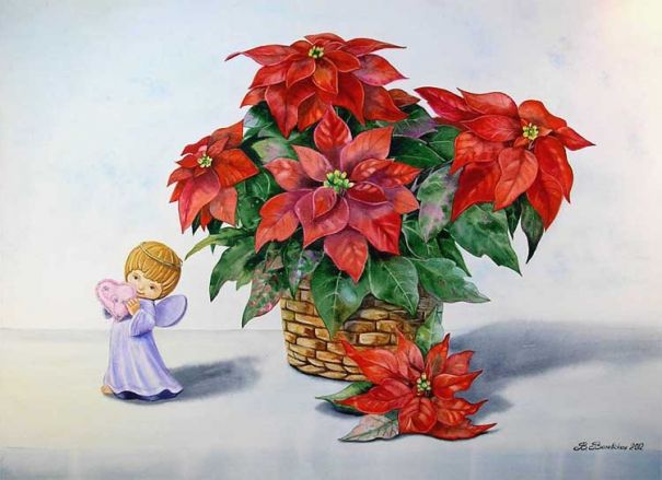 Маленький фарфоровый Ангелочек с сердечком в руках жил на подоконнике рядом с пышной Пуансеттией. Так по научному назывался цветок с алыми листьями на верхушках стеблей. Но Хозяйке квартиры больше нравилось называть его рождественской звездой. Она очень любила этот цветок, а Ангелочек души не чаял в доброй Хозяйке и готов был творить для неё самые настоящие чудеса. К сожалению, он был маленьким и к тому же игрушечным, поэтому его игрушечных сил хватало лишь на то, чтобы охранять любимца Хозяйки — цветок. Зато, какой пышной и яркой стала рождественская звезда! Все друзья и знакомые любовались и восторгались ею, но лишь одна Хозяйка догадывалась, благодаря чьим стараниям цветок стал таким прекрасным. Иногда она даже осторожно высказывала это предположение вслух, но Ангелочек только смущённо улыбался и скромно помалкивал...
