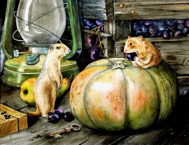 Валентина Валевская — "Суслик и Хомяк" — акварель
