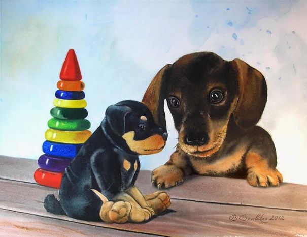 акварель "Два щенка" — Валентина Валевская