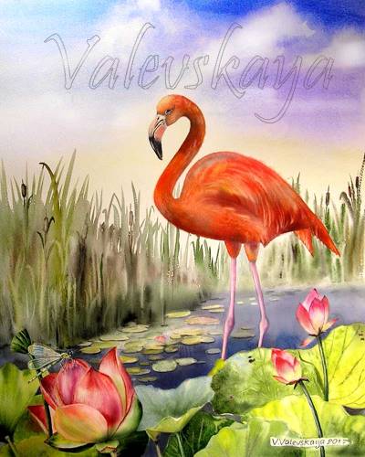 Валентина Валевская — "Красный фламинго" — акварель