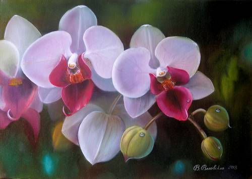 Валентина Валевская — "Орхидея с росинками" — холст, масло