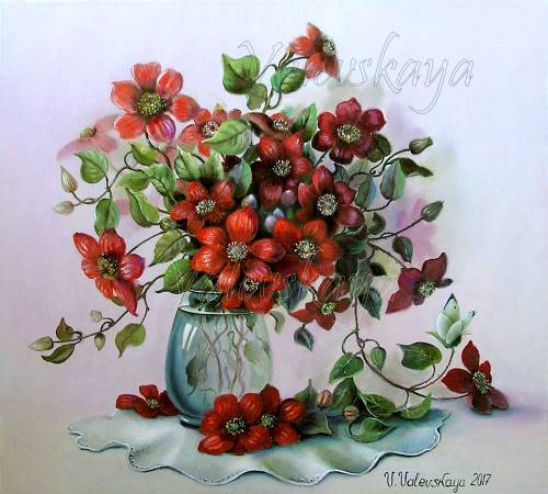 Валентина Валевская — "Букет клематисов" — холст, масло