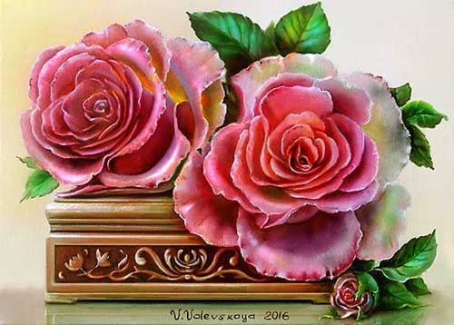 Валентина Валевская — "Розы на шкатулке" — холст, масло