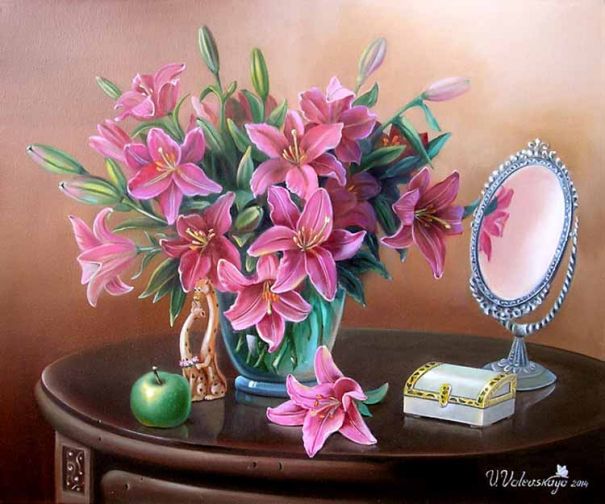 Валентина Валевская — "Лилии в натюрморте" — холст, масло