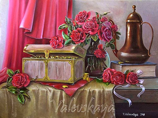 Валентина Валевская — "Сундучок с золотыми монетами" — холст, масло