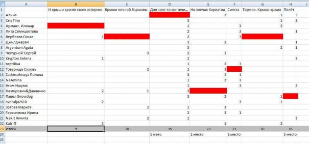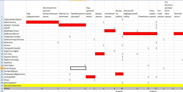 2 и 3 места заняли Армант, Илинар с рассказами "Крыши" и "Ангел на крыше" соответственно.