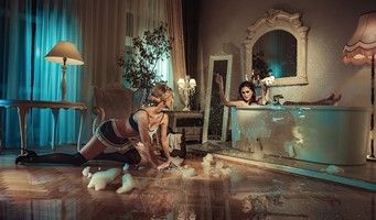 Сливаясь в яркой гармонии с губами девушки, Оксана так смачно облизывала губы модели, когда в ней самой странным образом бушевал ураган порочной дикой страсти. Находясь на руках у темноволосой властительницы, чей оттенок волос был тёмным, в сочетание с густым тоном кашемира. Такой тон вызывал в Оксане еще большее возбуждение, когда приоткрывая взгляд, она посмотрела на девушку, с которой губы играли танец страсти. Шатенка остановила своё влияние, держа Оксану за бёдра согнутых в колено ног, когда в её влагалище был накладной искусственный черный член. Стихийная порочная власть, обуздала разум Оксаны, после выпитого бокала вина, она словно сходила с ума в своё сознание, когда не могла насытиться сладострастием поцелуя.