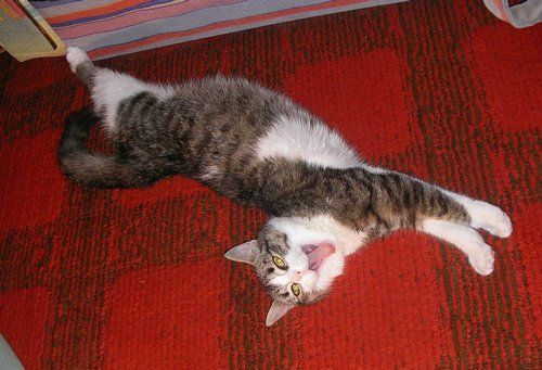 Мягкая, но упругая. В руках не удержишь, но стоит прилечь, как слышится нежнейшее «Миррр!» и кошка прилетает, чтобы лечь рядом или сверху. Ночью всегда под моим одеялом или на подушке, исполняет роль кошкогрелки. А иногда я сама ловлю ее и запихиваю под одеяло и она лежит, как положишь, и мурчит. Можно даже перекладывать справа налево, чтобы свернуться вокруг нее калачиком — она не возражает.