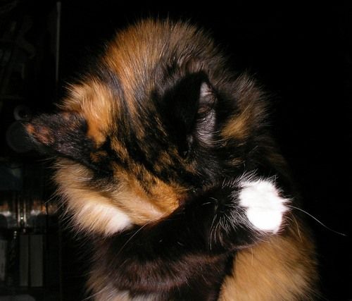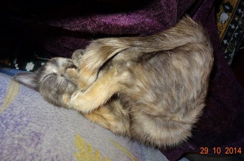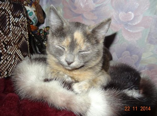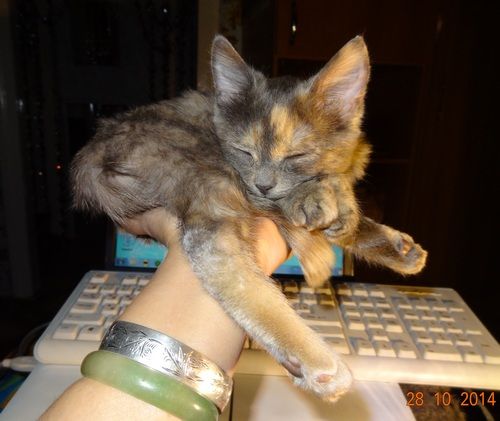 Про Фрейю пока нечего рассказать, даже фоток нет особенных. Судьба подарила мне эту кошечку на день рождения пару месяцев назад. И я еще пыталась сопротивляться, прося друзей Вконтакте уговорить меня не брать из подъезда котенка, которого пустила погреться соседка. И даже объявление повесила в Интернете. Через пару дней поняла: зря повесила, не отдам, мое. И не только мое. Сильва — ее мамка, к ней под бочок приходит спать это черепаховое чудо, Фрейа, Тимка бегает, играет с ней, гоняет голенастого кошачьего подростка по квартире — хотя это еще вопрос, кто кого гоняет. И только Дарья рычит на мелкую, хотя живут вместе уже почти два месяца.