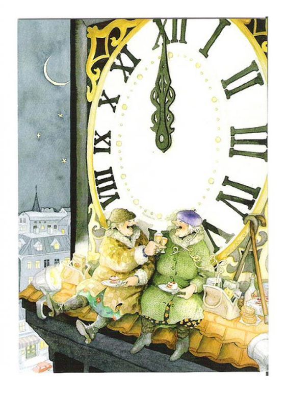 Год отсчитывает время до ухода в прошлое. Две бабульки-хохотушки, свесив ноги с края крыши, провожают старый год. Это нужно же, чтоб кто-то провожал тебя в дорогу, даже если та дорога без начала и конца. Все, что было, не исчезнет, тихо лишь сойдет с тропинки, но останется с тобою, сделай только шаг к нему. Две смешливые бабульки вспоминают все былое и смеются над собою. Это было — хорошо! Месяц лодочкой по небу проплывает звездным морем, обещая всем подлунным счастья, радости, любви. Две веселые бабульки под часами стол накрыли и с улыбкой отмечают — год был прожит не за зря. Стрелки замерли в двенадцать, разделяя есть и будет, а бабульки вновь смеются, потому что даже время их не в силах разлучить.