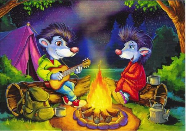 С тех пор наши ежики не пугались людей, а когда видели свою знакомую семейку, выбегали к их уютному и приветливому костерку за угощением и дружеской лаской.