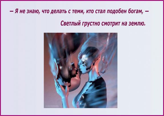 — Я не знаю, что делать с теми, кто стал подобен богам, — Светлый грустно смотрит на землю.