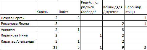 Ну, а если по номинациям, голосование, ввиду малого количества работ, осуществлялось лишь по двум.