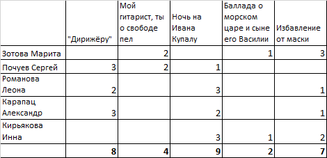 Таблица голосования: