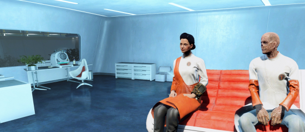 Задумчиво потирая лоб, Нора вышла из медицинского отсека. Хэнкок, увидев ее, поднялся с одной из скамеек, стоявших на площадке вокруг лифта.