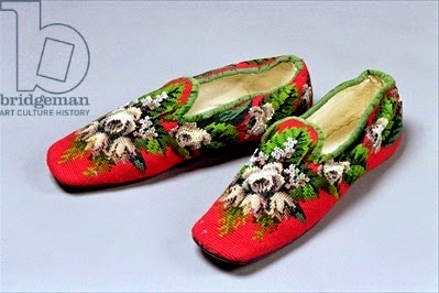 а это, для сравнения, английские мужские вышитые домашние туфли викторианских времен