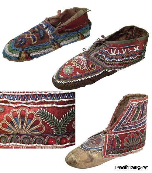 Настоящие индейцы, в отличие от реконструкторов двадцать первого века, никогда не заморачивались тем, насколько аутентичны их прикиды. Если человеку нравится красная куртка, неужели он будет отказываться от нее только потому, что это одежда бледнолицых? И если в руки попал кусок крашеной замши, неужели нельзя употребить ее на мокасины только потому, что индиго не растет в Америке? А уж от прекрасного стеклянного европейского бисера индейцы не отказывались еще и в семнадцатом веке.