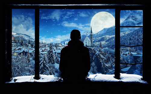 Тихо… Лишь потрескивают дрова в камине. И время будто замерло. А перед камином, разделённые невысоким столом, сидят двое мужчин. На столе два бокала, бутылка вина и шампанское. Большое мозаичное окно распахнуто настежь, а за ним, не смея войти, стоит звёздная морозная ночь.