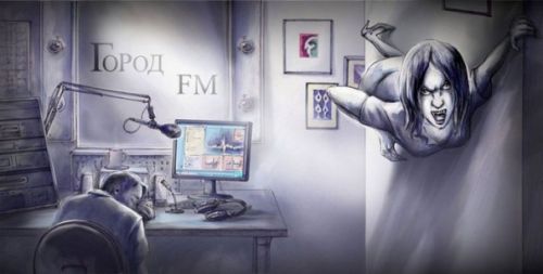 «А девочка продолжает играть. Ещё через минуту радио объявляет: «Девочка, девочка, гроб на колёсиках нашёл твой дом. Он ищет твой подъезд!»