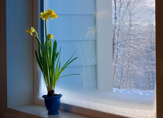 На подоконнике, в старом горшке, грустит цветок и зябко ёжится. Он смотрит на пролетающие снежинки. Холодный ветер гоняет их туда-сюда, и ни одна не залетает к нему, в распахнутое окно.