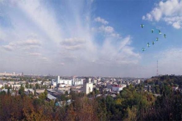 слышит, как над рощами, городом, рекой
