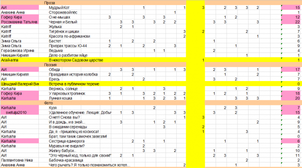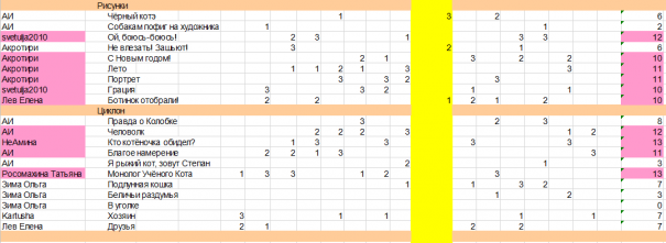 Прим.4 Швыдкий Валерий Викторович допустил несколько опечаток в своём голосовальном топе, и, так как он их не исправил, в этих категориях я не учитывала его голос.