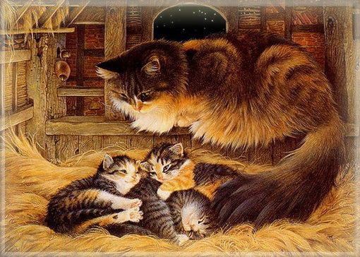 Молча протискиваюсь под руки и вижу кем-то забытую и брошенную в угол тряпку. И уже открываю было рот для вопроса: «А что это?», как взгляд упирается в пестрый клубок. Там на рваной старой фуфайке, свернувшись калачиком, лежит наша трехцветная кошка Улька. А рядом с нею, вернее в кольце ее лап и хвоста, — котята. Крохотные, крепко спящие, трое. И моя душа пропала, хотя может быть, наоборот она именно нашлась в тихом мурчании, в мягкой шелковости пятнистой шкурки, в спокойном взгляде зеленых глаз и доверии, что было оказано нам кошачьей мамой. А старый сеновал стал навсегда местом, где чудеса случаются, пусть не большие, размером с детскую ладошку, с котенка, с маленькую жизнь.