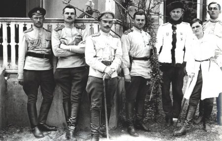 Командир Крымского корпуса генерал-лейтенант Я. А. Слащёв после ранения весной 1920 года вместе со штабом, любимой женой и племянником Никитой Березневым.