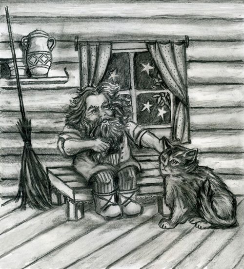— А-а-а, — протягивает старушка, — да ты никак Хозяина узрела. Федю, как я его зову. Так ты его не бойся — он добрый. Мы с ним давно живём в мире и согласии. Вот даже и имя ему дала, — старушка вздыхает и смотрит на пожелтевшую фотографию на стене — на ней изображён бравый солдат.