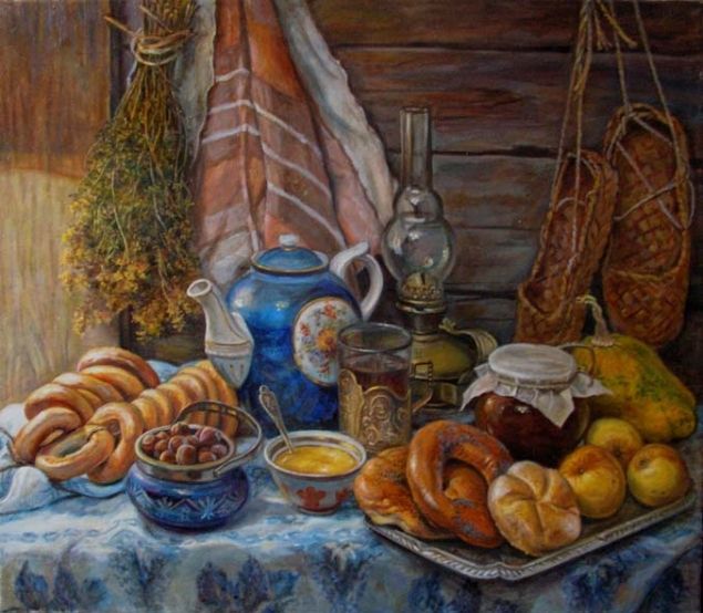 Вот уж и на столе блюдечки с медом стоят, баранки колечком свернулись, да пироги в плошке румяными боками хвалятся, самовар тихонько пыхтит, и плывет по избе медовый дух сладких летних трав. Вкусно. А та вторая, так и сидит у окна, зябко кутаясь в меховую душегрейку. Худенькая, востроносая, постаревшая, но такая родная. Крут Омутович смотрит на жену и хочется ему ее растормошить.