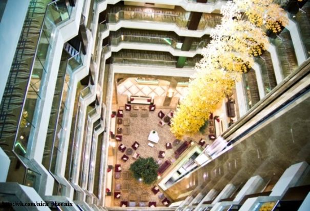 Оооо… многие видели как он строился к "Евро-2012", как по нему бегали взбудораженные голландцы, как они радовались тоннам пива, да и еще, по их меркам, такого доступного по ценовой политике. И как он стоит до сих пор в гордом одиночестве, будто небоскреб Брюса Вейна. На верхних этажах отеля расположен ресторан с открытыми площадками. Да, они, конечно, тоже не плохи для незабываемого вечера, но явно не подходят под первое место. А поговорим мы именно про "пентхаус пентхауса", или попросту — крышу. Сможете Вы туда попасть — или нет, проблемы Ваши, но впечатления… шарики за ролики заскакивают уже при одном только воспоминании. Здесь Вы почувствуете себя Наполеоном (не будем сейчас вспоминать людей нетрадиционной ориентации). Вот поверженный вождь пролетариата, а вот — такой манюсенький "Госпром". Да и мэрия такая игрушечная, будто сделана из спичечных коробков. А это что за муравьи? Е*…. Команду понял. Выпиваем как можно больше пива, и готовим орудие к стрельбе очередями. Правда, из-за последнего, пришлось потом быстро ретироваться с площадки, откуда открывается на самом деле такой живописный вид, что свои "патроны" можно было бы и донести до ближайшего туал… в смысле "хранения арсенала". Когда вы стоите здесь, еще и в обнимку со своим любимым человеком, то ощущение, будто Вы герой DC-комиксов, либо Marvel. Хотя, признаться открыто, черный пакет "Hugo Boss" на голове с прорезями вряд ли давал автору схожесть с Темным Рыцарем. Но! Фотка получилась зачетная! Да и друзяки ржали как кони. Для большей схожести по голосу — можно подышать гексафторидом серы.
