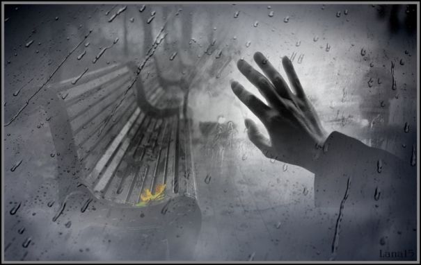 или может быть так — главный герой стоит у окна. смотрит на дождь и бурю за окном. он думает о дожде, о болезни отца. затем садится за стол и из карт строит домик. неожиданно врывается в комнату ветер и разносит по комнате карты. герой ругается но собирает их. после чего решает навестить сестру и попросить у нее свечи.
