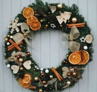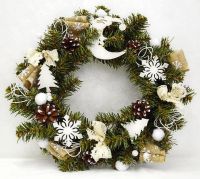 А к Новому Году иногда делаются своими руками игрушки на ёлку, снежинки. Венок на дверь — из веток, шишек и всяких разностей. Я даже думаю сделать и на свою дверь такой венчек.