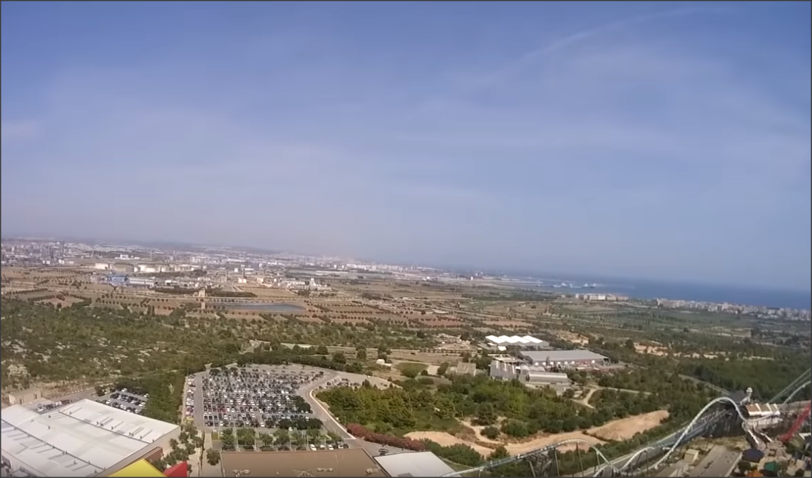 Ураган Кондор слева торчит. Видите? Шамбала — по центру, горки эти. А вот самый высокий — дуга такая — это уже в новой зоне Феррари аттракцион.