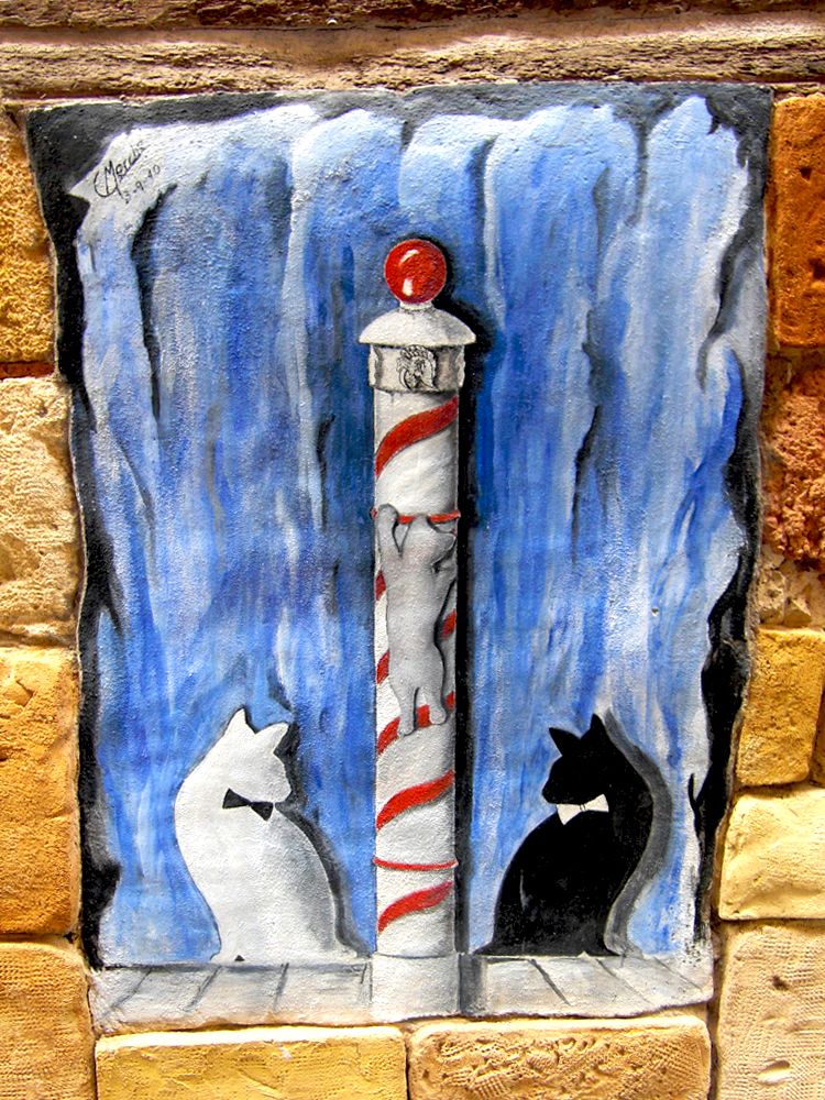 Ну вот.( А было бы интересно. Мы любим граффити.) У нас тоже его много на стенах. И жалко, что потом исчезает и появляется другое. Поэтому и фотографируем, чтобы уже сохранить.) вот этих котиков уже нет.(